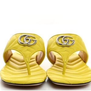 GUCCI Nappa Double G Marmont Thong Sandals. These are still in excellent condition/like new. They were worn three times. There is minimal marking at the toe area on both shoes, which is not noticeable when worn.