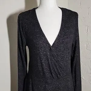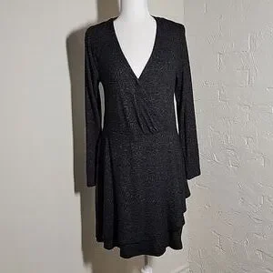 Cozy meets chic with this gently used Anthropologie Saturday/Sunday knit sweater dress in size medium. Featuring a sophisticated faux wrap silhouette and a flattering V-neckline, this dress is crafted from a soft, heathered gray marl fabric that offers both comfort and style. The long sleeves and layered, tulip-style skirt make it a perfect transitional piece for cooler weather. Whether paired with tall boots for the office or sneakers for a casual weekend, this versatile midi/mini dress is a wardrobe essential.