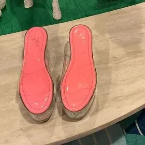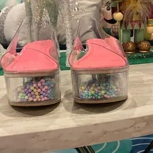 Step up your style with these chic pink and clear platform shoes. Featuring a playful design with colorful beads, these shoes are perfect for making a bold fashion statement.