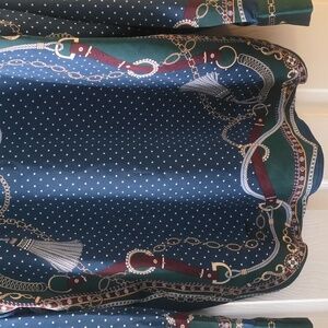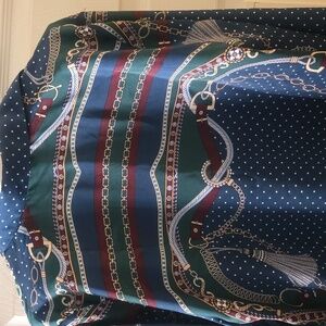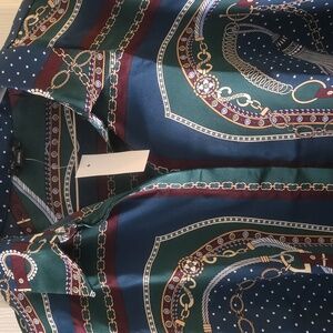 This satin shirt features a vibrant, eye-catching chain link print. The design incorporates rich colors, lending a touch of elegance and sophistication. With its essential silhouette, it presents a classic yet fashionable look suitable for various occasions. The shirt drapes beautifully, ensuring both comfort and style.