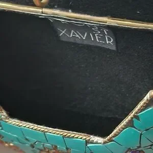 FROM ST XAVIER Turquoise Mosaic Crossbody Clutch – Beaded Gem Embellished NWT