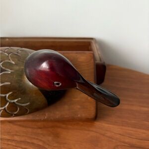 Elegant wooden duck figurine with a dark brown and green finish. Perfect for home decor and storage.