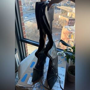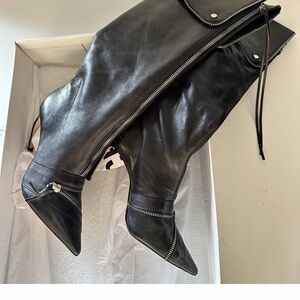 Schutz Arla Up Boots Black Leather Zipper Detail