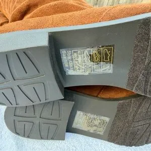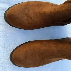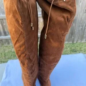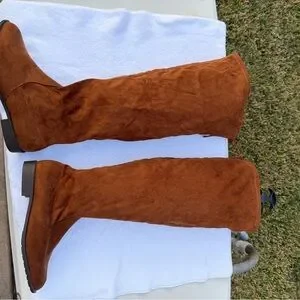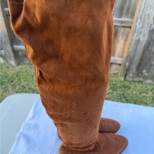 Stylish over the knee boots. Rich brown suede material. Perfect for any occasion. Boot has a very small scuff per last picture.