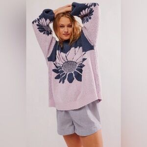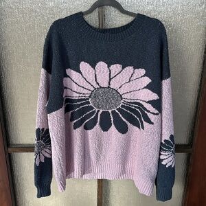 So femme and fun, this slouchy sweater is featured in a soft cotton-blend and oversized fit with bold floral detailing and cool colorblock design.