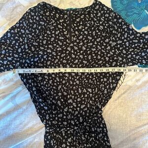 Madewell Jumpsuit Women’s XL Navy Blue Floral Long Sleeve V-Neck Straight Leg
