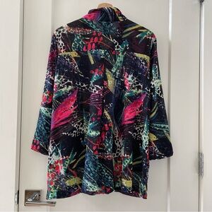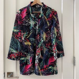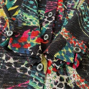 Ali Miles Abstract Print 3/4 Sleeve Button-Front Perforated Blouse Size M