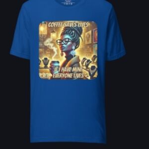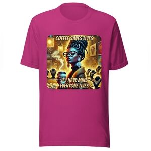 Black Graphic Tee with Coffee Saves Lives Design