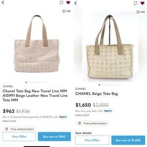 AUTHENTIC CHANEL Travel Line Beige CC Nylon, Leather Tote Bag