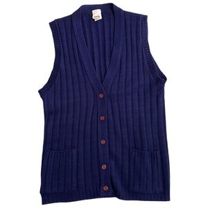 Vintage Montgomery Wards Navy Blue Sleeveless Cable Knit Sweater Vest Medium