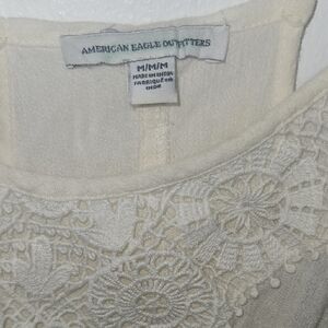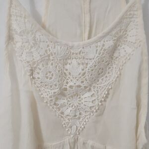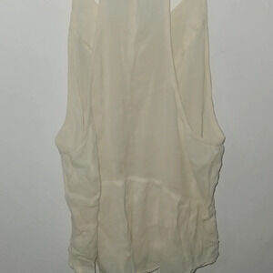Elegant cream blouse with lace detail. Sleeveless design. Perfect for casual or dressy occasions.