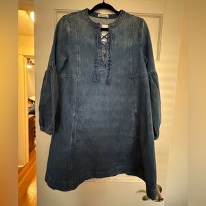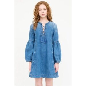 Chic Ulla Johnson Deren denim dress with lace-up front. Features long sleeves and relaxed fit. Ideal for casual wear. NWT.