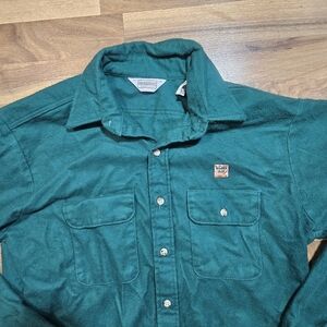 Five Brother L Tall Green Flannel Shirt Made in USA Golden Sun Patch