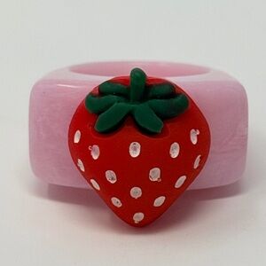 Strawberry enamel ring, cocktail ring, strawberry girl, fruit print, chucky acrylic statement ring, oversized ring, F21, Y2K jewelry, stackable ring, charm ring, stacking ring, pink ring, gingham, strawberry print, red, green, white, pink, cottagecore, kawaii, heart, strawberry shortcake, strawberry girl, girls, resin ring, acrylic ring, heart ring, party, cute, fruit rings, wild, floral, flower, pop art, 3D strawberry ring, novelty ring, Kate spade, transparent, strawberry accessories, strawberry jewelry, nostalgic, strawberry shaped, charms, bright, 2000s, candy, sweet, fruity, whimsy, resort wear, fruit themed, coquette, tropical