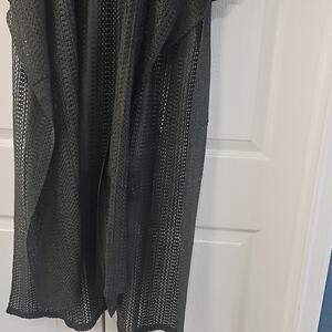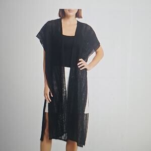 Love to Layer in this lightweight vest or coverup that features airy side vents and is crafted from open weave crochet knit.
