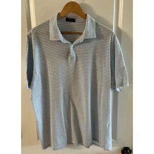 Peter Millar Collection Polo Shirt Men's Large Blue White Stripe Cotton Linen