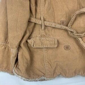y2k Seventy7 corduroy jacket. women's size 3x. Good used condition, front pockets inner liner is torn. Stylish brown jacket with faux fur lining. Features a belted waist and button details.