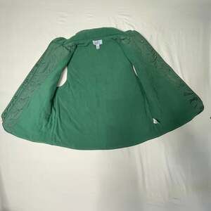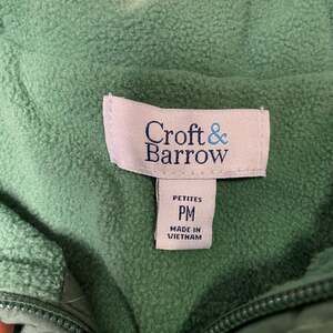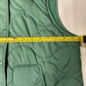 Croft & Barrow Women's Green Quilted Vest in Petites Medium. This vibrant green vest features a quilted design and a cozy fleece lining, perfect for layering during cooler weather. Made with 100% polyester for both the shell, lining, and filling, ensuring warmth and durability. It has a full snap-button front and two front pockets. Excellent pre-owned condition, with no visible signs of wear and tear. Ideal for casual outings, walks, or adding a pop of color to your everyday wardrobe. Made in Vietnam.