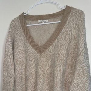 Cozy V-neck sweater. Soft knit fabric. Ribbed cuffs and hem.