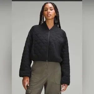 Lululemon Quilted Bomber Cropped Black Jacket Size 10