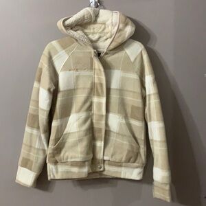 NWT Zero posur misses Ariel hood fleece cream plaid jacket Small