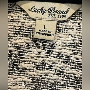 🔥🍀Lucky Brand women’s zip up cotton fleece jacket size L black/white. Quality!