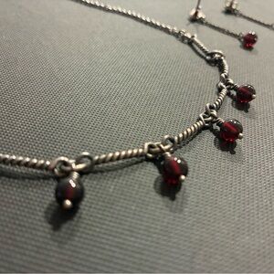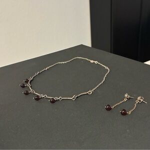 A beautiful retired garnet earring and necklace set. Comes in original box with card and a James Avery polishing cloth.