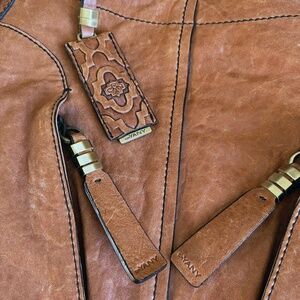 Beautiful OrYANI tan leather bag with 100% cotton lining. Excellent condition. Very clean. See photos for condition, has some small scuffs on back.