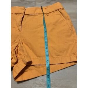 These J Crew women's shorts in size 6 are a vibrant orange color, perfect for brightening up your summer wardrobe. Made from a stretch chino fabric blend of cotton and spandex, these classic shorts feature a flat front, zip closure, and mid-rise fit. Ideal for travel, activewear, or casual occasions, these stylish shorts also have a slash pocket design and are machine washable for easy care. Whether you're looking for a pop of color or a versatile piece for your active lifestyle, these J Crew shorts are a must-have addition to your closet.