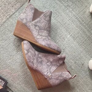 Toms Taupe Snake Print Kelsey Wedge Booties. Size 8.5