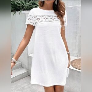 SHEIN | Frenchy Contrast Guipure Lace Tee Dress in white, Size M