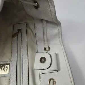 Carry the tote with its supple leather handles or attach the leather strap for hands-free refinement.