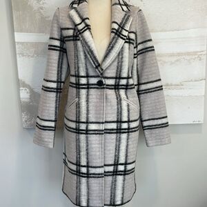 NWT Rachel Zoe Womens OverCoat One Button BlackGrey Timeless Plaid Size Small