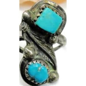 sz 6 1/2 Tribal Ring Blue Turquoise Patina 3.69g sz 6.50 Vintage Sterling Silver