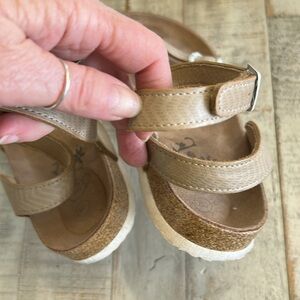 Northside Trendy sandal in tan, with stylish buckle accents. Cork Heal , suede feel top of soul, for comfort, ankle strap, Ideal for everyday wear. Size 8 check out pic comment with any questions.