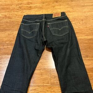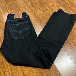 Levi's 501 Button Fly Straight Leg Dark Wash Blue Jeans. 33 waist X 32 inseam.