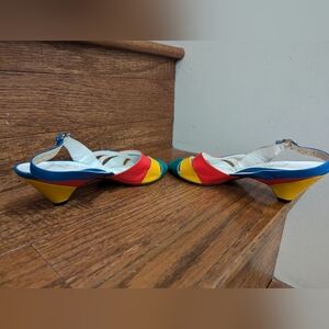 Peep toe, 80s, unique, costume, cosplay, Glam, party, retro, preppy, business, Multi, primary colors, Retro, Preppy, 80s party, Vintage, Rainbow, Calico, Open Toe Heels