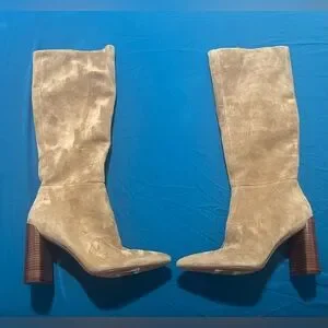 Vince Suede Mid-Calf Pointed Toe Block Heel Boots 7 EU37 Retail $598