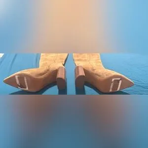 Vince genuine suede mid-calf boots featuring a pointed toe and stacked block heel. A timeless neutral perfect for fall/winter styling, western-inspired looks, or a minimalist capsule wardrobe.