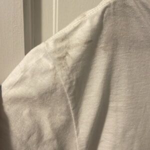 Item is new with tag, however, has a very minor dirtiness on the right shoulder. Perhaps a few wash it it should come off.