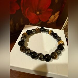 Stylish bracelet with black and brown beads. Perfect for any occasion.