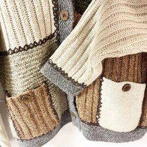 Patchwork Knit, Deadstock,Vintage, Neutral,Classic,Cozy Sweater,Cardigan,Collector Piece,Old School Knitwear, Granny, oversized, cottage core