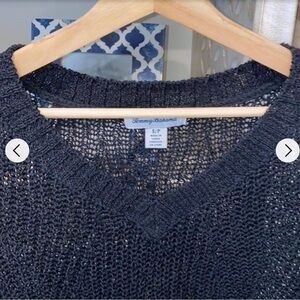 Tommy Bahama Marlina Tape Black Cropped Yarn Knot 3/4 sleeve sweater size medium