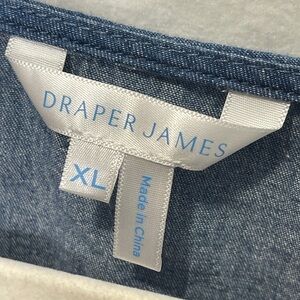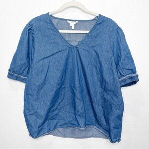 Draper James Heidi V-Neck Ruffle Sleeve Top in Chambray Size XL