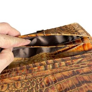 Chic Brahmin clutch with crocodile texture. Rich tan hue. Perfect for any occasion.