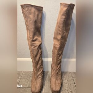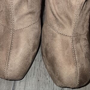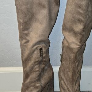 Heeled Boot Width: M Occasion: Casual Details: Comfort Boot Height: 17 Heel Type: Sculpted Heel Height: 5 Shaft Size: Knee High Toe Type: Round Sole Material: Synthetic Rubber sole Boot Material: Faux Leather. -Some Scuff Marks.