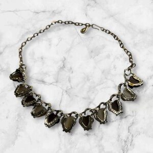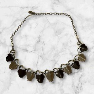 Chic necklace with alternating brown and cream elements. Perfect for any occasion. Necklace length 17”, leaf charms dimensions .50”x.50”