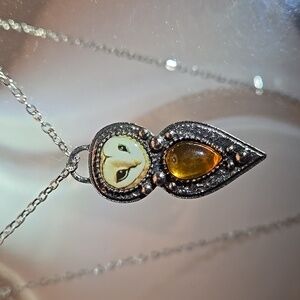 Exquisite Boho Owl Necklace with Yellow Glass Pendant - NWT