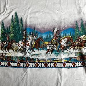 Vintage early 1990s Habitat graphic t-shirt featuring a Native American horse scene with Southwestern border detailing. Printed on a Made in USA Fruit of the Loom BEST tag.