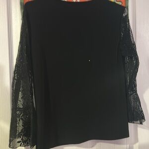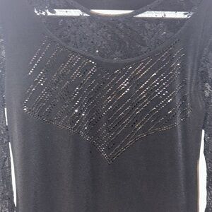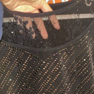 FLARE LACE BLACK SLEEVES BEDAZZLED RHINESTONE TOP LACE DETAILING SPARKLY